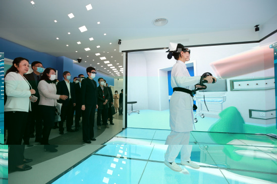 高曉兵在國家級護理實驗教學示範中心體驗教學模拟設備