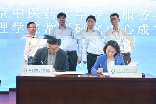 常州七院院長張豔、學院執行院長田侃共同簽訂合作協議,并為伟德线上平台伟德线上平台常州研究中心揭牌。常州市民政局副局長楊鐵、常州市衛健委副主任蔣春新分别講話,對中心成立表示祝賀,并就中心未來的工作提出了要求和希望。
