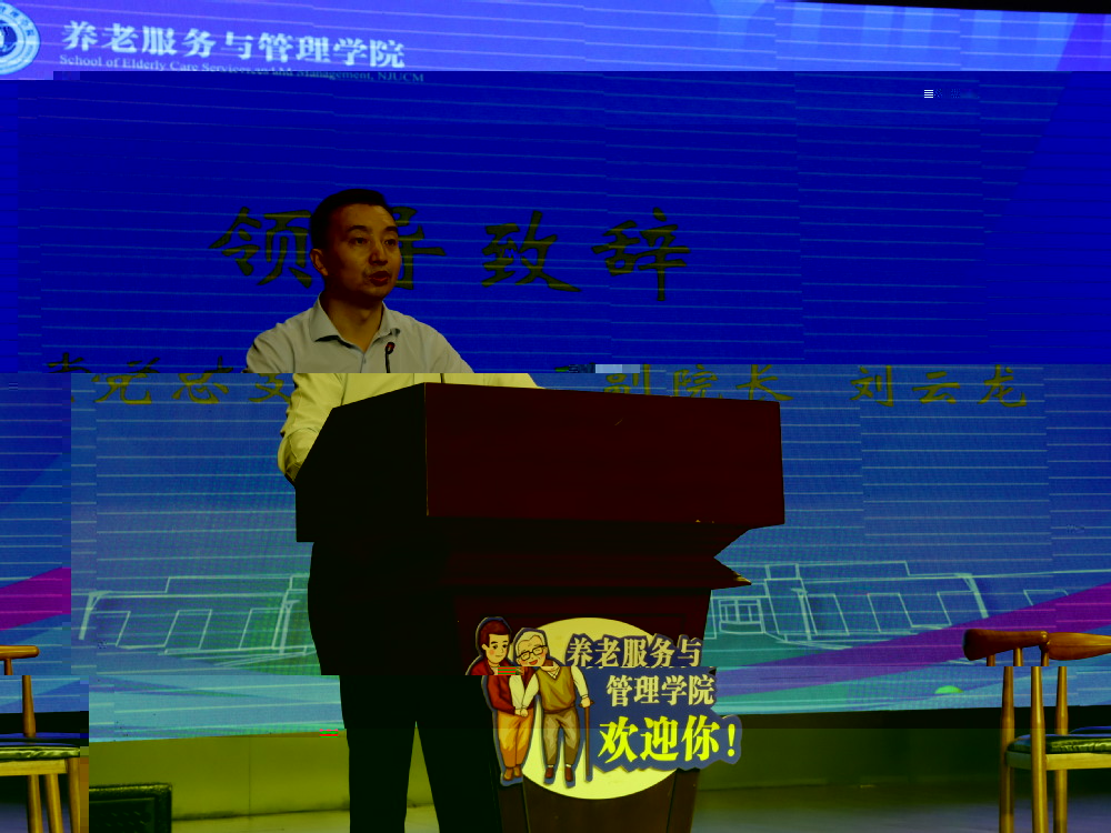 學院黨總支副書記、副院長劉雲龍老師在緻辭中指出黨和人民的事業離不開一代又一代有志青年的拼搏奉獻,青年是整個社會力量中最積極、最有生氣的力量,養老夢的實現要把關注的目光投向青年,他勉勵廣大團員青年要以國際化視野、專業化服務在實現養老夢的新征程上奮勇争先。