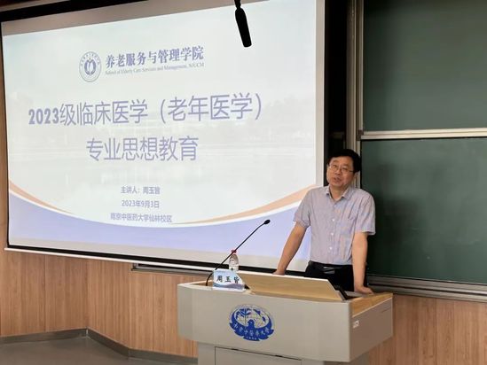校鼓樓臨床醫學院副院長、臨床醫學(老年醫學)專業執行負責人周玉皆為23級臨床醫學(老年醫學)專業的新生開展了一場生動的專業思想教育。周玉皆教授從專業介紹、專業要求和課程内容等部分闡述了臨床醫學以及臨床醫學(老年醫學)的學科背景,并通過講述自己從醫的曆程以及治病救人過程中感人瞬間,讓學生認識到了醫生的光輝形象以及醫術精明的重要性。最後,周玉皆教授告誡同學們在大學生活學習中,要不忘初心,牢記使命,全面發展,為成為一名合格的醫生打下良好的基礎。