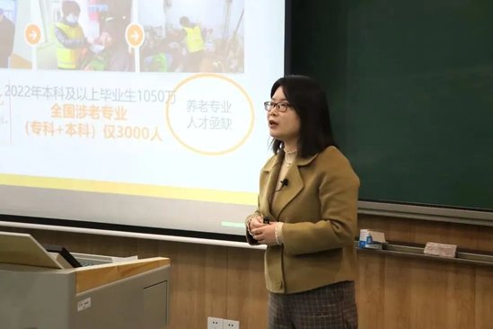 争做“時間銀行”校園模式探路者 學院依托區“‘時間銀行’學雷鋒志願服務示範基地”平台,成立院養老志願服務協會。團隊推動理論與實踐融合發展,“呵護老年——做‘時間銀行’養老志願服務的賦能者”項目獲推第八屆中國國際“互聯網+”大學生創新創業大賽省賽參賽資格,獲校第八屆“互聯網+”大學生創新創業大賽特等獎;創新“時間銀行”志願服務,打造養老專業青年特色社會實踐載體,項目獲校2021年度 “10100”創新創優工程立項資助。史秀蓮會長代表時間銀行養老互助平台對我院本次的邀請表示非常開心,她表示重回校園的心情就像是自己作為青年人剛創業那會充滿激情。史會長從養老行業專業人才緊缺為切入點,為同學們講解了養老行業藍海市場現狀,并從項目背景,項目成效以及項目賦能三方面詳細介紹了時間銀行養老互助平台的概念和意義以及所得成就。史會長還從自身創業的經曆出發,與同學們分享了大學生創新創業方向和未來就業形勢,宣講會現場同學們熱情高漲,史會長的一番分享也極大增強了同學們的專業自信和就業自信。