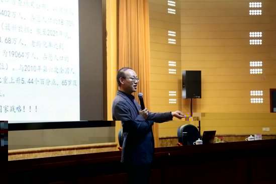 李靜教授從時代背景現實國情養老産業與養老事業的概念與關系養老事業和養老産業協同發展路徑四個方面旁征博引、深入淺出、風趣幽默地講解,在場師生獲益匪淺。