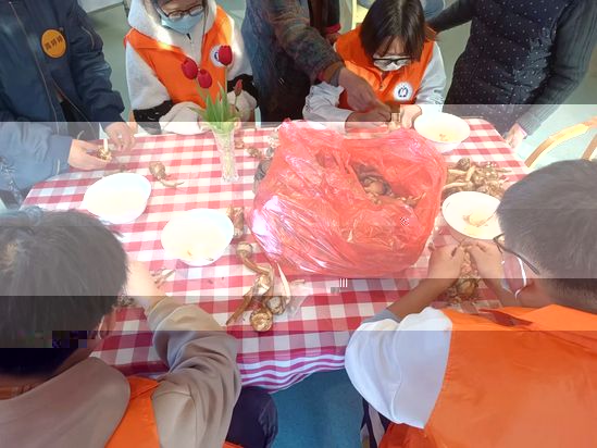 此外,還有同學準備了各種花茶,為老人們講解不同花茶的功效,有的則參與到了頤養中心的食材準備中,清洗處理各種蔬菜。