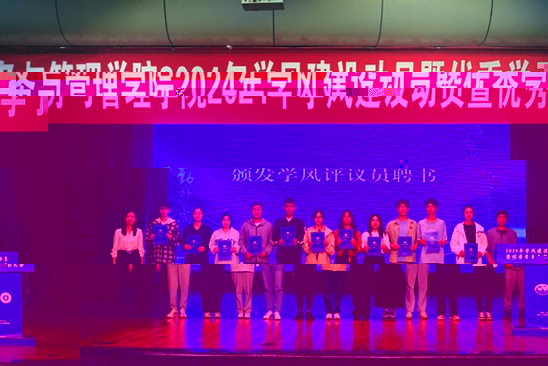 學院還特别聘任各班級學習委員為學風評議員,蘇文娟為全體學風評議員頒發了聘書。