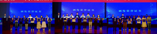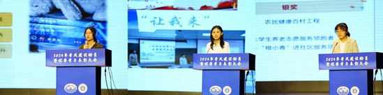 王明強為學院十佳學子、優秀學生幹部、最美養老青年頒發榮譽證書