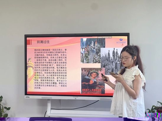 23老臨紀升珅圍繞新四軍艱苦卓絕的抗戰曆史,以曾祖父作為一名新四軍戰士、老幹部、老黨員的光輝生涯為指引,呼籲我們新一代“養老夢想家”們遵循以人民為中心的發展思想,用好“老黨員”這部“銀發活教材”,持續應對人口老齡化國家戰略。