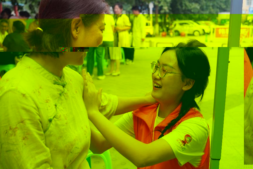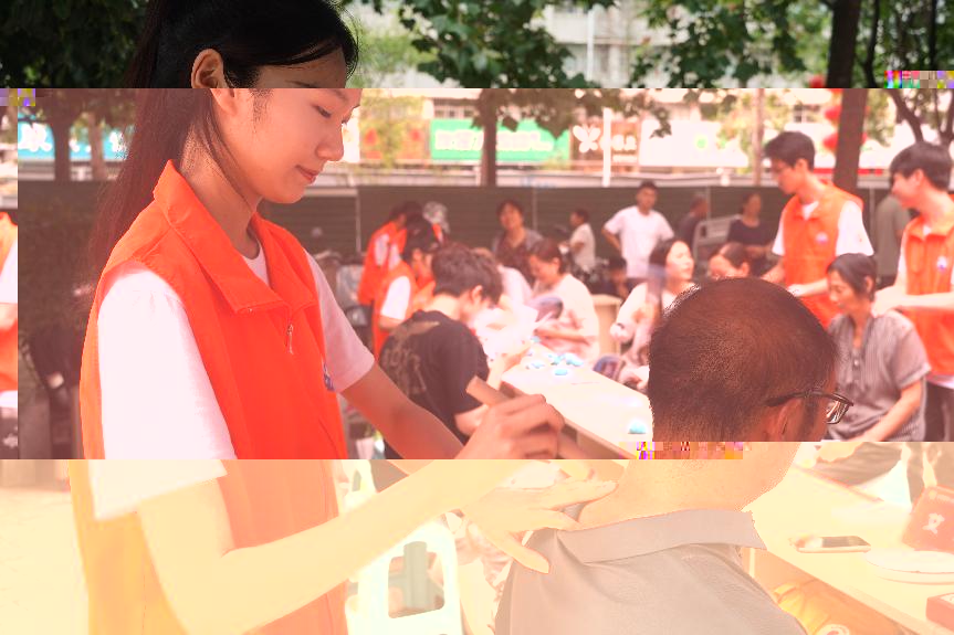 “橙小青”養老志願服務團積極開展中醫藥健康知識普及,贈送中藥香囊,科普三伏天等時令養生辦法,增強民衆的健康意識;采用“菜單點單式”為現場老人們提供養生功法、穴位按摩、耳穴埋籽、刮痧推拿等中醫藥養老養生服務,教學刮痧、點穴等易上手的中醫藥适宜技術,指導老年人注重預防保健,做好慢病管理,減少疾病發生。