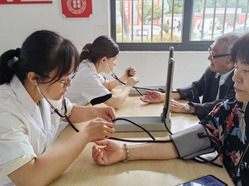 在量血壓區域,志願者們仔細地為每一位參與者測量血壓,并耐心地講解血壓的相關知識,提醒大家關注自身健康狀況。