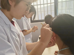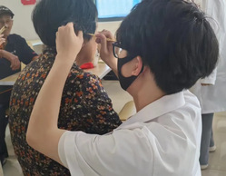 在這個春末夏初的時節,伟德线上平台伟德线上平台23級老年康複專業的志願者們在仙林新村為居民們展開了兩期量血壓、艾灸、推拿、刮痧、耳穴埋籽等志願服務。