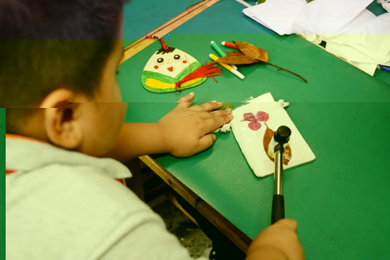 在植物拓印端午香囊中,小朋友挑選自己喜歡的本草植物,手拿小錘将植物形狀和紋理在無紡布袋上“敲敲”留住。随後,孩子們在橙小青志願者的指導下熟練的裝料、填充、封邊,一個個香氣宜人、小巧玲珑的中藥香囊就完成了。