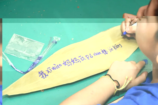 在“粽”情端午環節,活動設計了“粽”裡尋它:“粽”葉投壺——對長輩的心裡話等小遊戲。活動設置了“粽”葉投壺環節,孩子們在事先烘幹的粽子葉上寫下祝福,我們借鑒古代投壺遊戲的規則,帶領孩子們一起投出自己親手寫下對長輩的祝福,希望孩子們在動手中增強孝親敬老意識,埋下敬老愛老的種子。