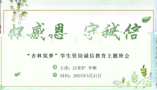 本次班會旨在教育班級同學誠實守信,學會感恩。提高學生對資助政策的認知度。營造誠實守信的校園文化氛圍,促進學生全面發展。