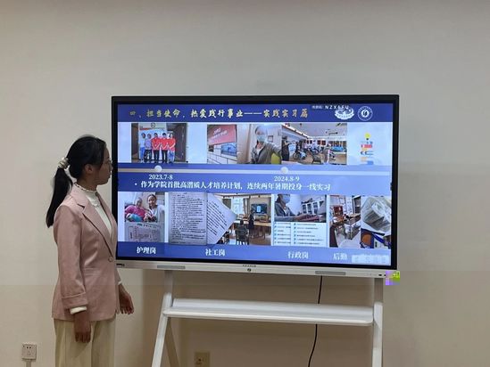 答辯會上,候選人們以生動講述和精彩展示诠釋了新征程上青春養老人的風采。有的同學參與“橙小青”養老志願服務團,将中醫藥特色養老服務下沉基層,用實際行動踐行“為天下兒女盡孝”的初心;有的同學全身心投入科研,多篇研究成果成功發表于國内外具有高影響力的學術期刊。2024年暑假,部分候選人更是積極參與學院“高潛質人才培養計劃”,深入無錫九如城、南京九如城等養老機構跟師學習,全面提升社會責任感、創新能力和實踐能力。