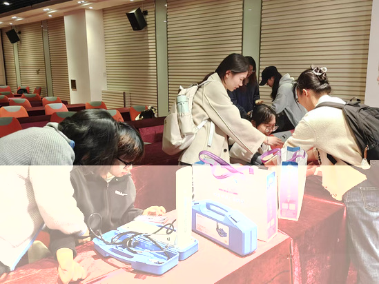 他們詳細講解了各個服務細節和要求,并親自示範。在他們的帶領下,學員們認真聆聽并實操學習,掌握了耳穴埋籽、艾灸、推拿、測血糖、量血壓等技能手法。