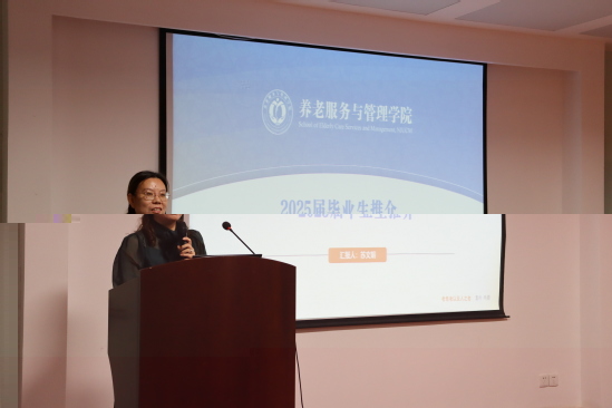 會議期間,盧聖鋒詳細介紹了養老産業學院的人才培養方案,涵蓋培養目标、培養方式、培養模塊、遴選方式和激勵機制等方面。蘇文娟對2025屆畢業生基本情況進行了介紹,重點分享了學院人才培養的模式、路徑和成效。
