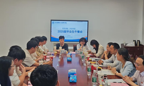 6月16日,學院首屆畢業生午餐會在豐盛樓103會議室舉行。學院黨總支書記孫新新、黨總支副書記副院長蘇文娟、副院長盧聖鋒、副院長陳娜、畢業班師生代表齊聚一堂,共叙情誼,共謀發展。午餐會由蘇文娟主持。