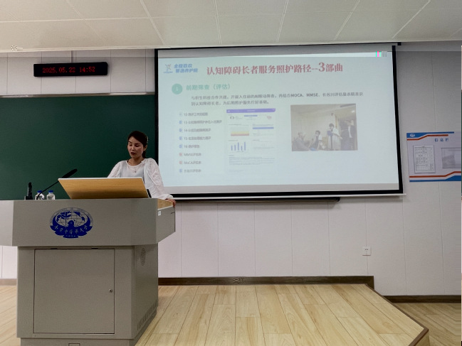 上海全程玖玖馨逸養護院宮建玲老師聚焦“認知障礙長者照護實踐”,結合阿爾茨海默病、血管性癡呆等常見認知障礙類型,通過視頻示範指導學生觀察老年人生理信号與微表情,掌握“握手力度”“眼神接觸”等細節傳遞的關懷溫度。