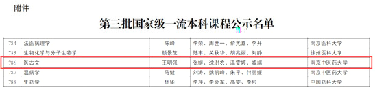 8月21日,教育部發布關于第三批國家級一流本科課程認定結果的公示名單,我院王明強教授團隊申報的《醫古文》課程入選。