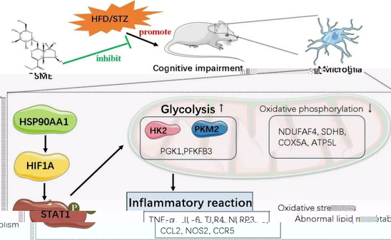 該研究基于HFD/STZ誘導的糖尿病小鼠模型及HG/PA誘導的小膠質細胞體外模型,系統闡明了源自栀子的活性成分——栀子苷甲酯改善糖尿病相關認知障礙的作用機制。