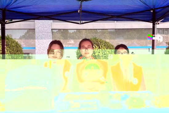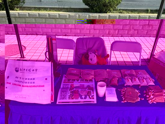 三名志願者早早到達學院攤位,并布置好了場地,滿懷期待等待同學們的到來。