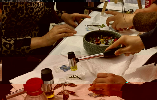 在植物書簽制作區,志願者們引導現場嘉賓和遊客将精心挑選的中草藥植物葉片、花瓣巧妙組合,封存在透明書簽材料中。一片薄荷葉搭配一小朵菊花,不僅有着清新的外形,還寓意着清肝明目。