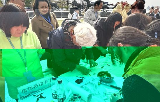 植物拓印手工活動巧妙融合了中醫藥與藝術。志願者們引導嘉賓選取心儀的植物,将其平整地放在畫布上,用小錘子敲打,直至植物的輪廓和紋理清晰呈現在畫布上。在拓印過程中,大家不僅感受到植物紋理之美,更對中草藥有了更深刻的認識。