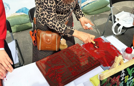 在中草藥雕版印刷環節,志願者聚焦“以藥入藝”創意,打造刻有黃芪、五味子的雕版。參與者用天然染料拓印,制作出兼具美學與科普功能的藥典卡片。雕版紋路清晰細膩,藥香與墨香交相輝映,激發現場遊客參與熱情。