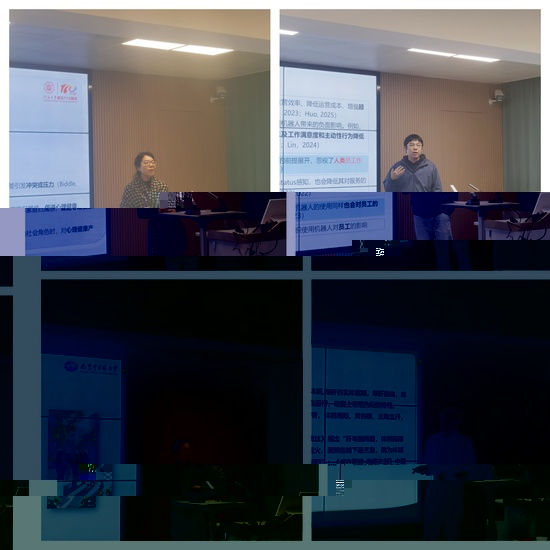 學術交流環節由中醫藥文獻研究院教授、中醫國學研究所副所長範崇峰主持。河海大學公共管理學院、人口研究所所長王歡副教授,南京郵電大學管理學院劉德文副教授分别就《家庭代際關系與老年人心理健康:祖輩托育保護機制研究》《Beyond the Machine: How Robot Adoption in Luxury Services Reduces Employee Engagement by Threatening Work Meaningfulness等議題作報告,學院老年心理教研室主任孫越異進行了精彩點評。中醫學院張衛華副教授分享《抗衰老方劑配伍與運用》;中醫藥文獻研究院李崇超副研究員探讨了《體用學說在中醫中的運用》,學院教學實驗實訓中心主任薛文達予以點評。