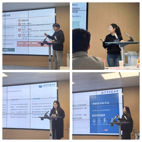 研究生論壇由學院老年社會學系執行系主任、老年學研究所常務副所長習婉钰主持阮一語、宋婷宇、劉雨琦、李思惠四位碩士研究生先後彙報了各自在腦梗防治、阿爾茨海默病中醫藥研究、中醫藥數字化政策分析、數字素養與老年抑郁等領域的研究進展,學院醫養結合教研室主任陳暢、養老服務管理學系主任彭翔分别進行點評與指導。