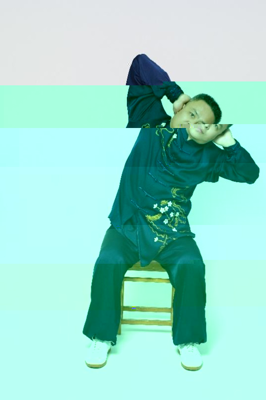 第六式:鳴鼓側抵強三椎。動作一:兩臂托起至頭部上方,下落,掩耳,鳴天鼓(食指壓中指,擊打位于後頸部枕骨下方凹陷處的玉枕穴)3次,目視前方。動作二:左側屈身,左肘夠左髋,回轉身形中正,然後右側屈身,右肘夠右髋,回轉身形中正。動作三:兩手離開兩耳至兩肩上方,向前推掌,下落握拳于腰間。動作一和動作三做兩遍,動作二做一遍。左右側屈可疏通督脈,調暢頸、胸、腰三椎的氣機;鳴天鼓能醒腦開竅,這些動作共同起到補益精髓、安神定心的作用。